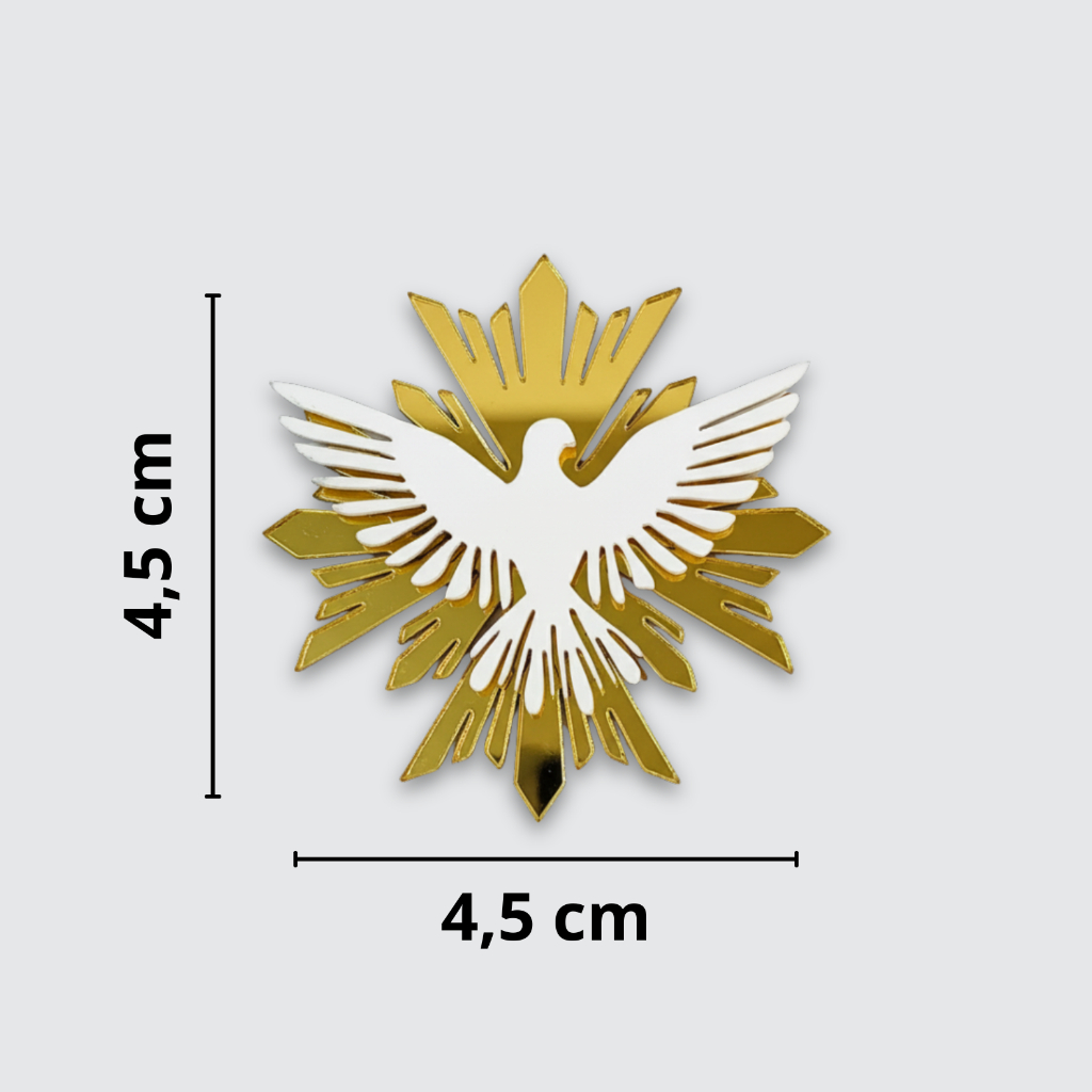 Aplique Espírito Santo em Acrílico 🕊️ Leve mais significado e sofisticação para suas criações com o Aplique Espírito Santo em Acrílico. Uma peça delicada, perfeita para trabalhos artesanais, lembrancinhas religiosas, convites e decorações especiais. ✨ Características do Produto • Material: Acrílico de alta qualidade 2mm • Dimensão: 4,5 cm • Cores disponíveis: Dourado com branco Prata com branco • Kits disponíveis: 10, 20, 30 ou 50 unidades 🌟 Diferenciais • Corte a laser para acabamento impecável • Brilho elegante que valoriza qualquer projeto • Resistente, durável e fácil de aplicar • Ideal para batizados, casamentos, eventos religiosos e artesanato em geral 💡 Um detalhe especial que transmite fé, beleza e elegância em cada peça.
