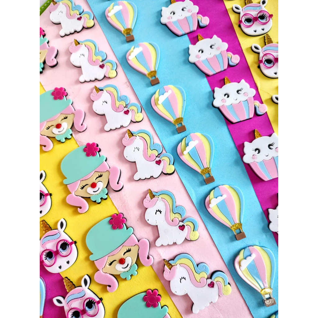 Apliques de acrílico corte a laser com 4cm coleção Fantasia/ pacote 5 pçs