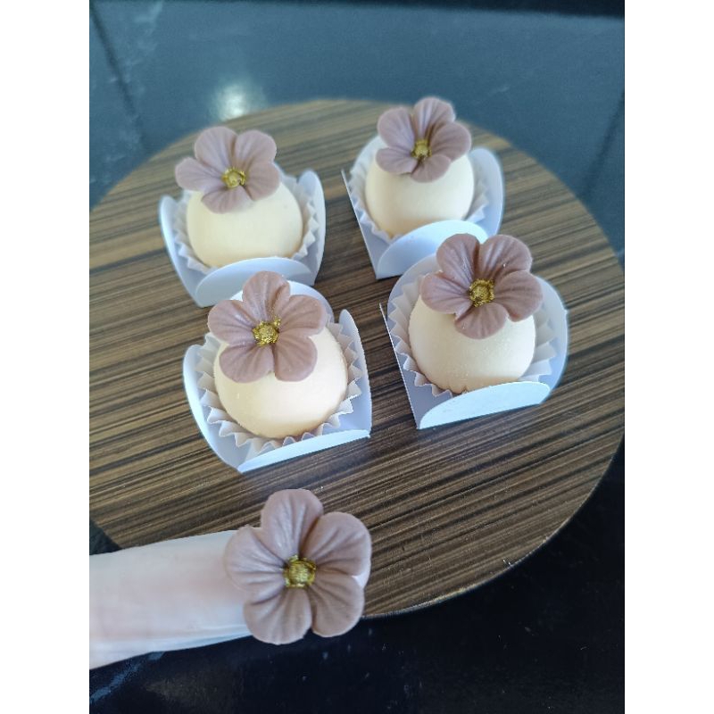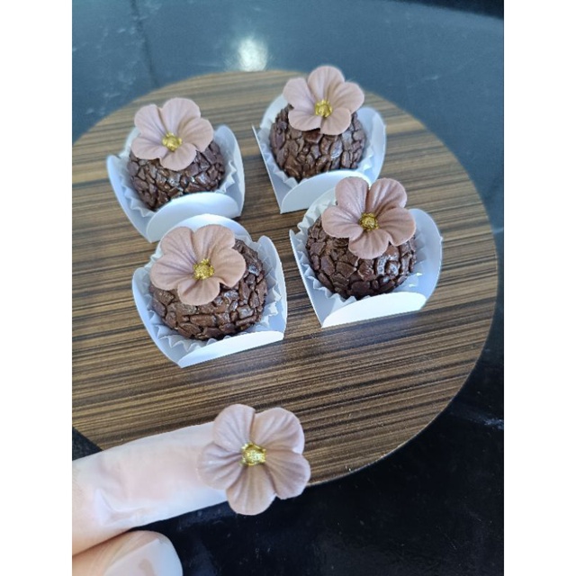 Kit apliques flores, para decoração de doces, feito com pasta de leite em pó. Kit com 50 unidades Variação de cores (confirmar no chat) Nossos confeitos são todos feitos em pasta de leite em pó, 100% comestíveis!! Os confeitos em pasta são perfeitos para aplicação em brigadeiros, trufas, biscoitos, macarrons e barras. Validade: 30 dias não armazenar na geladeira Manter em local longe de claridade, pois pode desbotar a cor. OBS: SOMENTE O APLIQUE, NAO ACOMPANHA CAIXA E NEM OS BRIGADEIROS