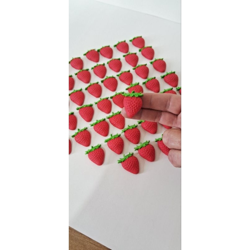 apliques morangos em pasta americana.30unid