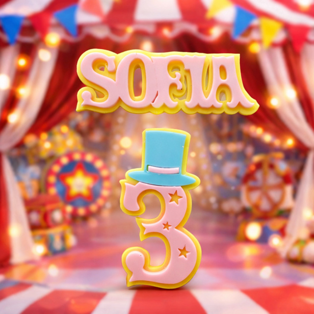 Aplique Personalizado Tema Circo – Acrílico Espelhado 🎪 Deixe a decoração ainda mais encantadora com nossos apliques personalizados em acrílico, perfeitos para festas com tema circo, aniversários e lembrancinhas especiais. Produzidos com acrílico de alta qualidade, possuem fundo espelhado que valoriza o brilho e dá um acabamento sofisticado ao produto. 📏 Tamanho: ✔ 5 cm 📦 Opções de compra: ✔ 10 nomes – 5 cm ✔ 10 numerais – 5 cm ✔ Kit com nomes + numerais 🎨 Cores: ✔ Fundo espelhado ✔ Cores personalizáveis (escolha após a compra) ✍️ Personalização: Após a compra, envie pelo chat: ✅ O nome desejado ✅ O número (idade ou numeração desejada) ✅ A cor escolhida ✨ Detalhes do produto: ✔ Feito em acrílico de alta qualidade ✔ Acabamento delicado e corte preciso ✔ Ideal para caixinhas, centros de mesa e lembrancinhas ✔ Produto artesanal