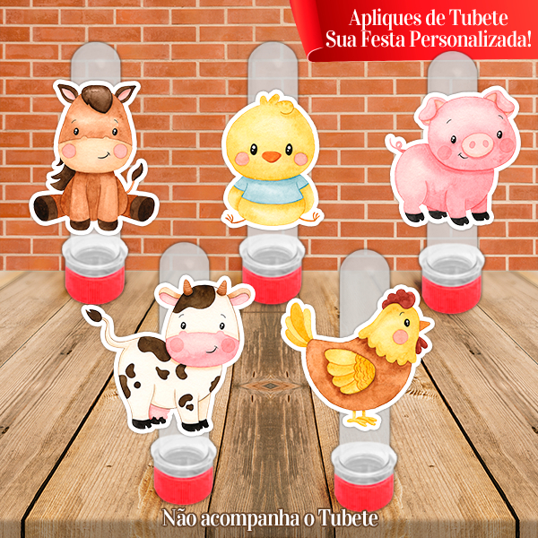 Apliques Personalizados Fazendinha Aquarelado Menina Rosa – Indicados para Tubetes de 13 cm