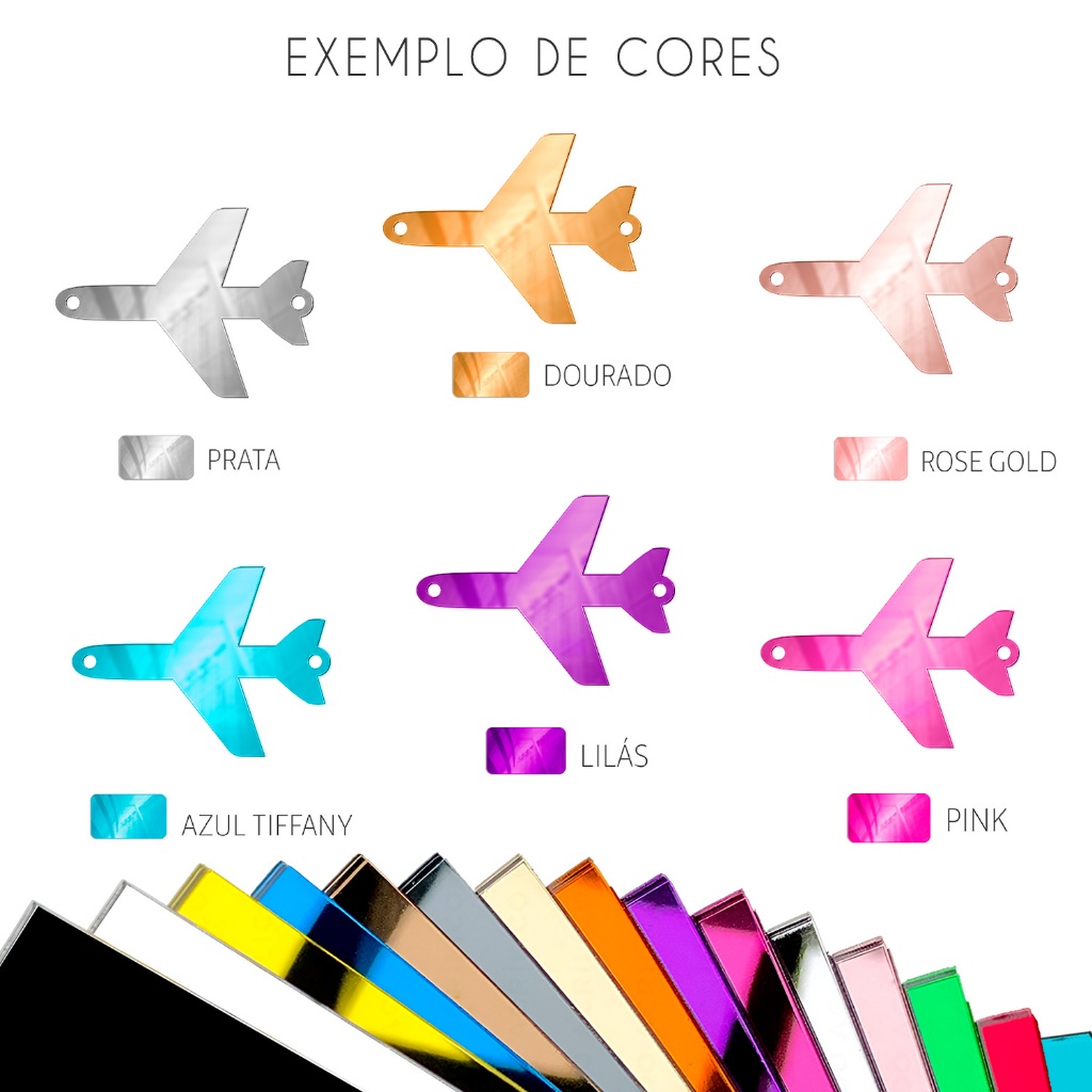 Dê um toque especial aos seus projetos com este lindo aplique em formato de avião! Fabricado em acrílico espelhado de alta qualidade, ele possui 3,5cm de comprimento por 2,5cm de altura, perfeito para personalizar lembrancinhas, convites, decorações e artesanatos. ✨ Detalhes do produto: ✔ Material: Acrílico espelhado ou leitoso ✔ Tamanho: 3,5cm x 2,5cm ✔ Possui furos para aplicação ✔ Disponível em várias cores Informe a cor desejada no campo de mensagens para personalizar seu pedido! 🚀