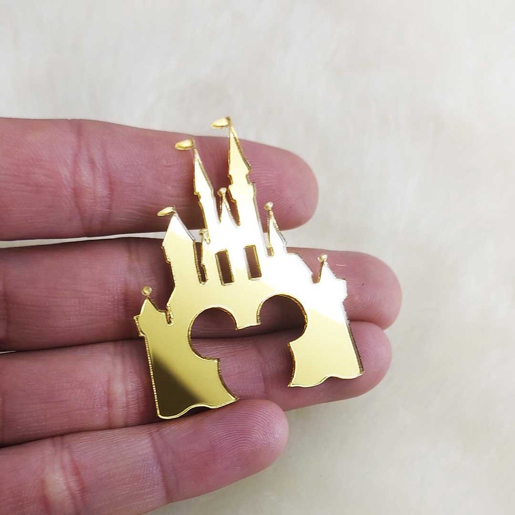 Apliques tag castelo disney acrilico dourado com silhueta do mickey ou minnie 5 cm TOP-FAST
