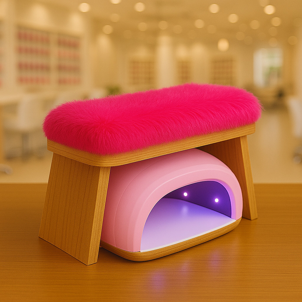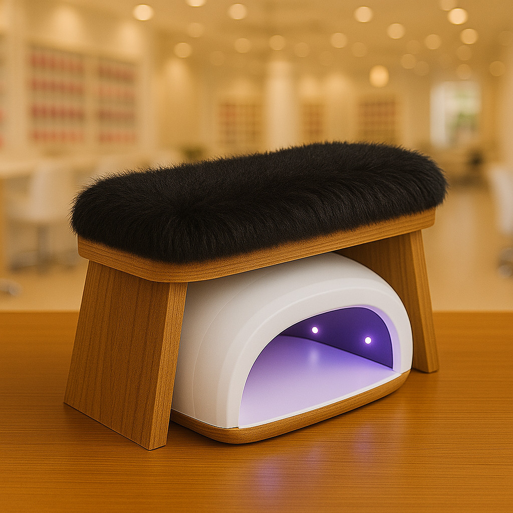Apoio Apoiador de Mão Manicure Pelúcia Felpudo Madeira Crua