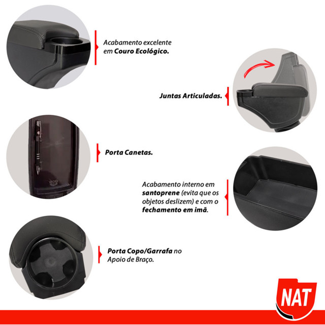 Apoio de Braço Encosto, Descanso de Braço Astra Ano 2003 Até 2011 C/Porta Copo O apoio de braço é um item automotivo que proporciona um conforto único ao motorista, é um acessório indispensável para viagens longas ou trânsitos intensos na cidade, deixa o interior do veiculo com uma aparência luxuosa e elegante, oferecendo um espaçoso porta objetos onde o(a) motorista pode armazenar itens como: carteira, celular, caneta, moedas, batons/maquiagens, entre outro objetos que normalmente ficam soltos pelo veículo. O Apoio de Braço NAT possui uma instalação simples e intuitiva, o motorista consegue realiza-la em sua própria residência, não sendo necessários furos ou colas para fixação. O produto é encaixado no console central do veículo e é confeccionado em plástico ABS de alta resistência com sua estrutura em aço carbono. Informações: * Para o Modelo Astra Ano 2003 Até 2011 C/Porta Copo. * Possui Porta Copo. * Braço articulado que permite flexibilidade na Regulagem. * Acabamento Sofisticado. * Acabamento Interno em Santoprene , evitando que objetos deslizem e façam barulho. * Instalação simples, rápida e intuitiva. * Não precisa realizar furos ou uso de colas, basta apenas encaixar no console central. * Revestimento em material ecológico de alta qualidade. * Juntas Articuladas. * Espaço Interno dividido em dois compartimentos e porta canetas. * Base em aço de carbono de alta qualidade e resistência. Veículos Compatíveis: * Modelo: Astra. * Ano: 2003, 2004, 2005, 2006, 2007, 2008, 2009, 2010 e 2011. Dados Técnicos: * Peso: 2,0 kg. * Altura: 31 cm. * Comprimento: 30 cm. * Largura: 12 cm. Cores Disponíveis: * Preto Com Linha Preta. * Cinza Com Linha Cinza. * Grafite Com Linha Grafite. * Preto Com Linha Vermelha. Conteúdo * 01 Apoio de braço. Garantia De Fabrica 3 meses * Imagens meramente ilustrativas. Atenção: Para compras realizadas em nome de Pessoa Jurídica/CNPJ, não serão faturadas, no momento não estamos gerando nota para CNPJ, caso tenha interesse em efetuar compras com o CNPJ entre em contato com a fábrica. Por favor solicitamos que compre como pessoa física/CPF para que seus pedidos possam seguir conforme o programado e prazo passado. Sobre a Marca: A Indústria NAT tem orgulho de ser uma empresa nacional, com sua sede em São Paulo, que está há mais de 20 anos construindo uma história de sucesso no âmbito do desenvolvimento de peças automotivas que acompanham e solucionam as necessidades de consumo do mercado, com o mais alto padrão de qualidade, proporcionando o melhor custo-benefício aos consumidores e sempre buscando ser referência em sua atuação. Seus produtos são produzidos em território nacional e estão presentes em toda América Latina.