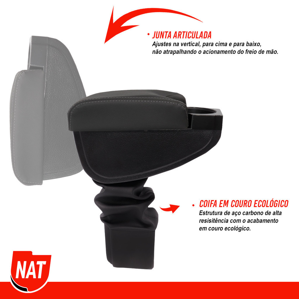 Apoio de Braço Encosto, Descanso de Braço Ecosport Ano 2007 Até 2012 Automática C/Porta Copo O apoio de braço é um item automotivo que proporciona um conforto único ao motorista, é um acessório indispensável para viagens longas ou trânsitos intensos na cidade, deixa o interior do veiculo com uma aparência luxuosa e elegante, oferecendo um espaçoso porta objetos onde o(a) motorista pode armazenar itens como: carteira, celular, caneta, moedas, batons/maquiagens, entre outro objetos que normalmente ficam soltos pelo veículo. O Apoio de Braço NAT possui uma instalação simples e intuitiva, o motorista consegue realiza-la em sua própria residência, não sendo necessários furos ou colas para fixação. O produto é encaixado no console central do veículo e é confeccionado em plástico ABS de alta resistência com sua estrutura em aço carbono. Informações: * Para o Modelo Ecosport Ano 2007 Até 2012 Automática. * Possui Porta Copo. * Braço articulado que permite flexibilidade na Regulagem. * Acabamento Sofisticado. * Acabamento Interno em Santoprene , evitando que objetos deslizem e façam barulho. * Instalação simples, rápida e intuitiva. * Não precisa realizar furos ou uso de colas, basta apenas encaixar no console central. * Revestimento em material ecológico de alta qualidade. * Juntas Articuladas. * Espaço Interno dividido em dois compartimentos e porta canetas. * Base em aço de carbono de alta qualidade e resistência. Veículos Compatíveis: * Modelo: Ecosport. * Ano: 2007, 2008, 2009, 2010, 2011 e 2012. Dados Técnicos: * Peso: 2,0 kg. * Altura: 31 cm. * Comprimento: 30 cm. * Largura: 12 cm. Cores Disponíveis: * Preto Com Linha Preta. * Cinza Com Linha Cinza. * Grafite Com Linha Grafite. Conteúdo * 01 Apoio de braço. Garantia De Fabrica 3 meses * Imagens meramente ilustrativas. Atenção: Para compras realizadas em nome de Pessoa Jurídica/CNPJ, não serão faturadas, no momento não estamos gerando nota para CNPJ, caso tenha interesse em efetuar compras com o CNPJ entre em contato com a fábrica. Por favor solicitamos que compre como pessoa física/CPF para que seus pedidos possam seguir conforme o programado e prazo passado. Sobre a Marca: A Indústria NAT tem orgulho de ser uma empresa nacional, com sua sede em São Paulo, que está há mais de 20 anos construindo uma história de sucesso no âmbito do desenvolvimento de peças automotivas que acompanham e solucionam as necessidades de consumo do mercado, com o mais alto padrão de qualidade, proporcionando o melhor custo-benefício aos consumidores e sempre buscando ser referência em sua atuação. Seus produtos são produzidos em território nacional e estão presentes em toda América Latina.