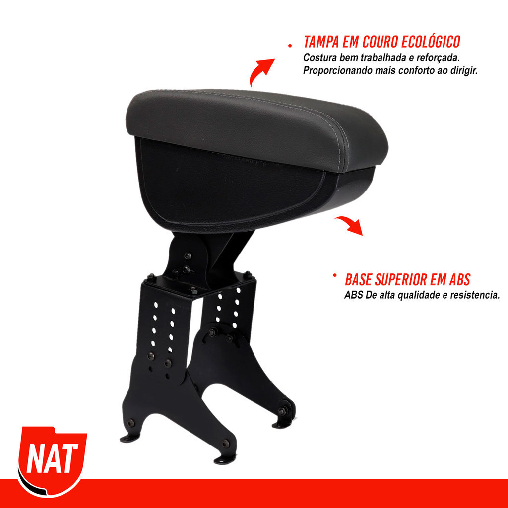 Apoio de Braço Encosto, Descanso de Braço Universal Em Material Ecológico Para Todos Modelos de Veículos. * Veículos Com no mínimo de 12cm entre os bancos da frente. O apoio de braço é um item automotivo que proporciona um conforto único ao motorista, é um acessório indispensável para viagens longas ou trânsitos intensos na cidade, deixa o interior do veiculo com uma aparência luxuosa e elegante, oferecendo um espaçoso porta objetos onde o(a) motorista pode armazenar itens como: carteira, celular, caneta, moedas, batons/maquiagens, entre outro objetos que normalmente ficam soltos pelo veículo. O Apoio de Braço NAT possui uma instalação simples e intuitiva, o motorista consegue realiza-la em sua própria residência. O produto é encaixado/instalado no Console Central do veículo e é confeccionado em plástico ABS de alta resistência com sua estrutura em aço carbono. Informações: * Para todos os modelos de veículos com mínimo de 12cm entre os bancos da frente. * Braço articulado que permite flexibilidade na Regulagem. * Acabamento Sofisticado. * Acabamento Interno em Santoprene , evitando que objetos deslizem e façam barulho. * Instalação simples, rápida e intuitiva. * Instalação realizada no Console Central do veículo. * Revestimento em material ecológico de alta qualidade. * Juntas Articuladas. * Espaço Interno dividido em dois compartimentos e porta-canetas. * Base em aço de carbono de alta qualidade e resistência. Veículos Compatíveis: ( Lembramos que o veiculo precisa ter no mínimo 12cm entre os 2 bancos da frente ) * Modelo: Todos * Ano: Todos Dados Técnicos: * Peso: 2,0 kg. * Altura: 31 cm. * Comprimento: 30 cm. * Largura: 12 cm. Cores Disponíveis: * Preto Com Linha Preta. * Cinza Com Linha Cinza. * Grafite Com Linha Grafite. Conteúdo * 01 Apoio de braço. Garantia De Fabrica : 3 meses * Imagens meramente ilustrativas. Atenção: Para compras realizadas em nome de Pessoa Jurídica/CNPJ, não serão faturadas, no momento não estamos gerando nota para CNPJ, caso tenha interesse em efetuar compras com o CNPJ entre em contato com a fábrica. Por favor solicitamos que compre como pessoa física/CPF para que seus pedidos possam seguir conforme o programado e prazo passado. Sobre a Marca: A Indústria NAT tem orgulho de ser uma empresa nacional, com sua sede em São Paulo, que está há mais de 20 anos construindo uma história de sucesso no âmbito do desenvolvimento de peças automotivas que acompanham e solucionam as necessidades de consumo do mercado, com o mais alto padrão de qualidade, proporcionando o melhor custo-benefício aos consumidores e sempre buscando ser referência em sua atuação. Seus produtos são produzidos em território nacional e estão presentes em toda América Latina.
