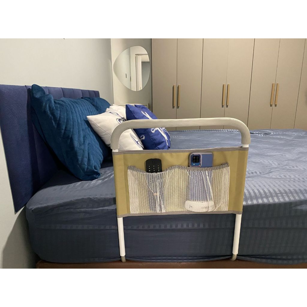 APOIO De Cama ..BEGE. Segurança para IDOSO REFORÇADA LONA COM BOLSOS