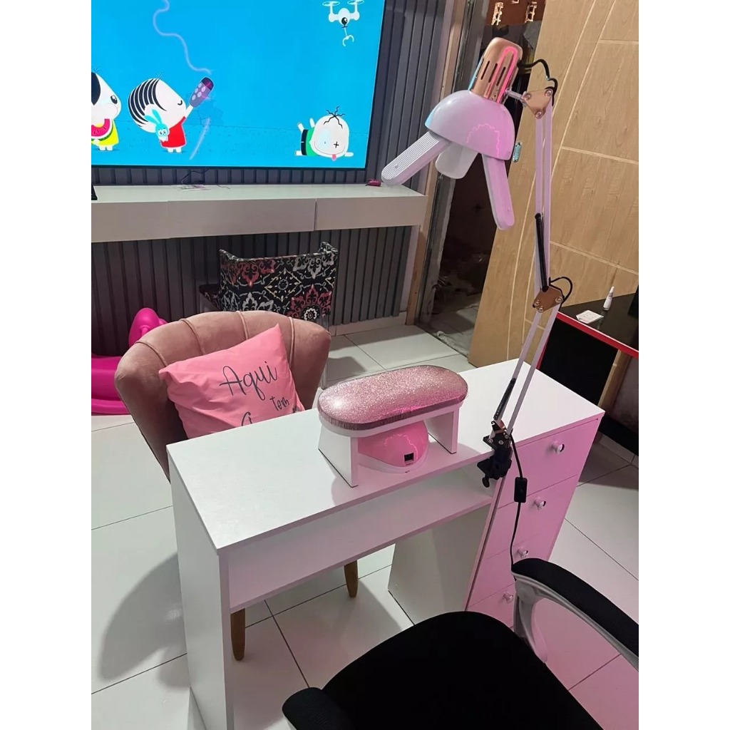 Apoio de Mão Premium com Glitter Rosa – Luxo e Conforto para Nail Designer Eleve a qualidade do seu atendimento com o Apoio de Mão Premium Glitter Rosa, desenvolvido especialmente para profissionais que valorizam conforto, ergonomia e sofisticação no ambiente de trabalho. Com estrutura em MDF legítimo e acabamento refinado, o apoio possui almofada estofada com revestimento em Courvin impermeável e espuma de alta densidade D28, oferecendo o suporte ideal durante o alongamento de unhas ou outros procedimentos. Seu design moderno com glitter rosa e pés brancos em formato trapezoidal traz elegância ao seu espaço, além de funcionalidade com espaço interno para acomodar a cabine. Principais Benefícios: ✅ Conforto e ergonomia – Ajuda a manter a postura correta e reduz tensões durante o atendimento. ✅ Materiais de alta qualidade – Estrutura resistente em MDF, espuma firme e revestimento durável. ✅ Design sofisticado – Almofada com acabamento em glitter rosa e base branca com visual clean e moderno. ✅ Fácil de higienizar e transportar – Ideal para o dia a dia de trabalho. ✅ Alta durabilidade – Desenvolvido para uso profissional contínuo. Dimensões Aproximadas: Comprimento: 33 cm Espaço entre os pés: 24 cm Altura entre os pés: 11 cm Altura total: 15 cm Transforme sua rotina com mais conforto, praticidade e estilo.