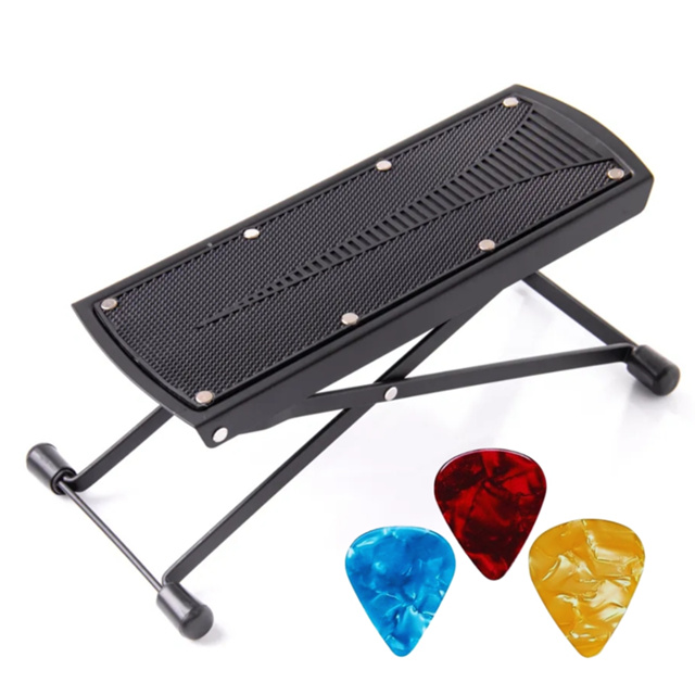 Apoio Descanso de Pé Para Violão Guitarra Viola Com Regulagem + 3 Palhetas