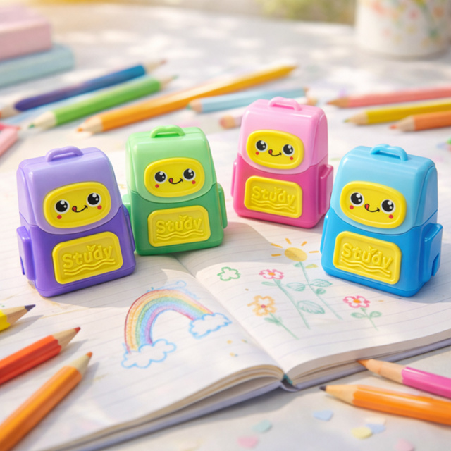 Apontador com Borracha 2 em 1 Mochila Fofa Escolar | Material Criativo Papelaria Cute