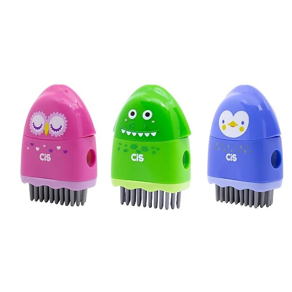 Apontador Escolar Fofo com Depósito 3 em 1 Apontador Borracha Vassourinha Criatic Cis