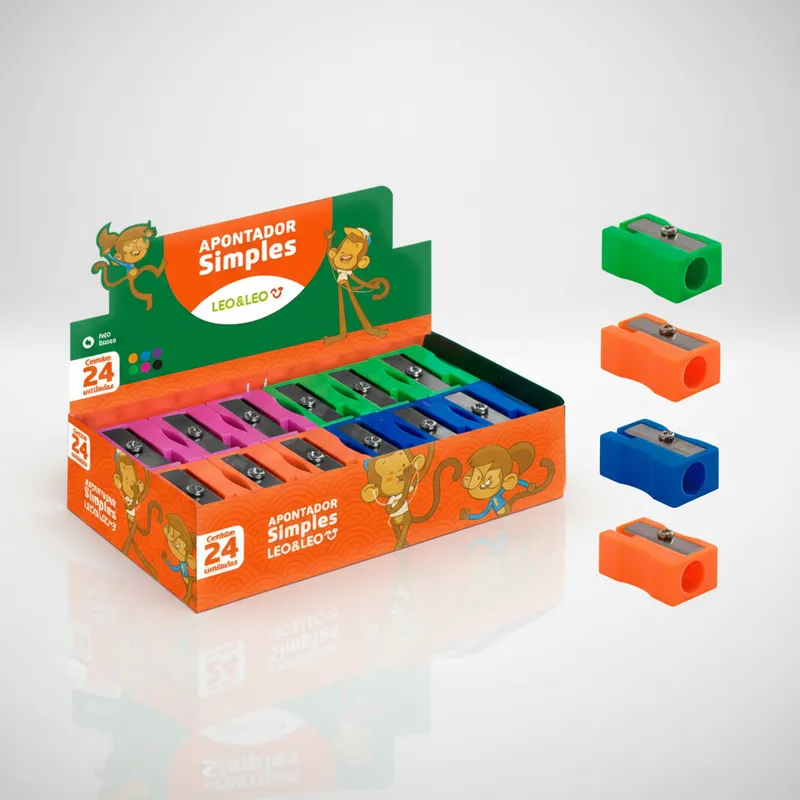 Apontador Simples Colorido Leo L eo com 24 un Cores Sortida