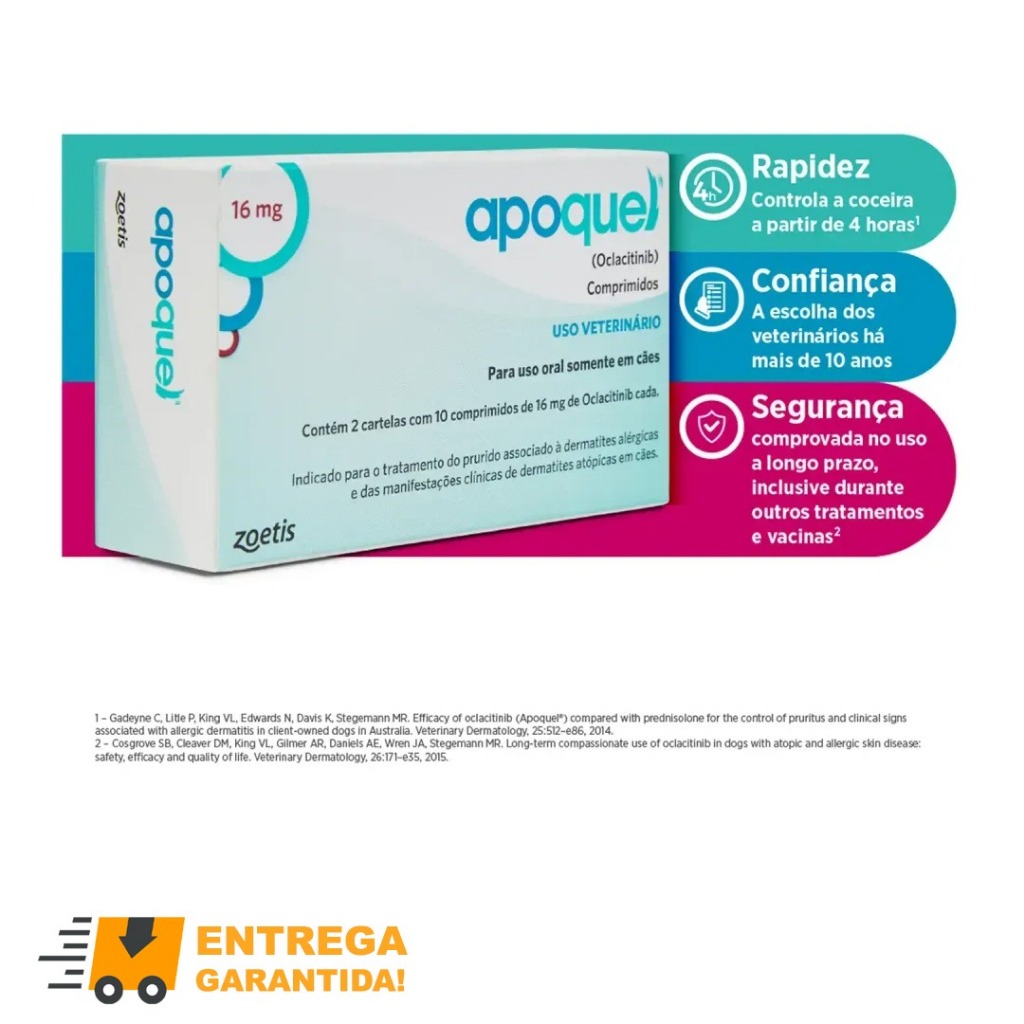 Apoquel 16mg Zoetis Dermatite Alergia e Coceira Cães 20 Comprimidos Original-Envio Rápido