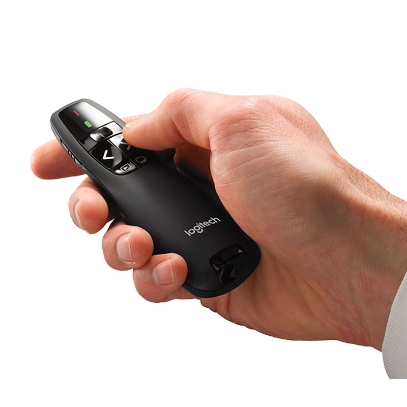 Apresentador multimídia sem fio R400 - Logitech Descrição: - Controles intuitivos de apresentação de slides - Os botões são localizados facilmente por toque. - E os contornos suaves dão uma sensação agradável. - Você estará no controle do primeiro ao último slide. - Ponteiro a laser vermelho* (Alcance de até quinze metros) - Indicador do nível de energia das pilhas - Receptor sem fio plug-and-play (Não há software para instalar. Para começar, basta conectar o receptor a uma porta USB. Quando a apresentação terminar, guarde o receptor no apresentador.) Detalhes: - Requisitos de sistema: Computador baseado no Windows ( Windows Vista®, Windows® 7, Windows 8, Windows 10 ou posterior) Porta USB. - Informações sobre garantia: Garantia de hardware limitada de três anos - Conteúdo: Logitech® Wireless Presenter R400, duas pilhas AAA, estojo para transporte e documentação do usuário. Especificações - Dimensões (altura x largura x profundidade): 37,8 mm (1,49 pol.) x 115,5 mm (4,55 pol.) x 27,4 mm (1,08 pol.) - Peso: 57 g (2,01 onças) - Dimensões do receptor (altura x largura x profundidade): 16,5 mm (0,65 pol.) x 58,6 mm (2,31 pol.) x 7,9 mm (0,31 pol.) - Peso do receptor: 6 g (0,21 oz) - Cor: Preto - Classe laser: Laser Classe 2 - Saída máx.: Menos de 1 mW - Comprimento de onda: 640~660 nm (luz vermelha) - Tipo de bateria: Duas pilhas AAA - Durabilidade da pilha (Ponteiro laser): Máximo de 20 horas - Durabilidade da pilha (Apresentador): Máximo de 1050 horas - Distância de funcionamento sem fio: Aprox. 10 m* Código de Homologação da Anatel: 042141301484