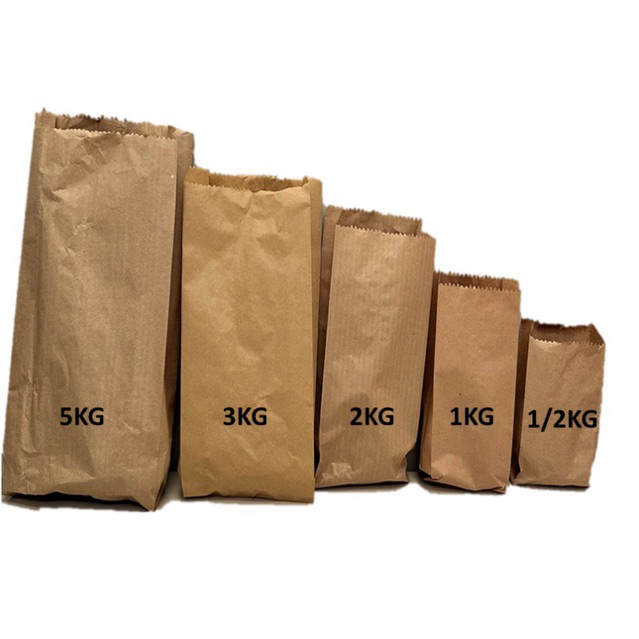 APROXIMADAMENTE - 100 Sacos de Papel Kraft Mix Pardo fosco P/ Padaria, Doces, Farmácia, Mercearia. Uso doméstico e comercial, ideais para padarias, lanchonetes, farmácias, mercearias, supermercados. Muito utilizado no comércio para embalar e transportar alimentos como pães, doces, pipocas, balas, entre outros, de acordo com sua necessidade. Por se tratar de papel natural podem haver pequenas variações no tom e textura do produto conforme o lote, nada que impossibilite seu uso. Tamanhos e medidas: 1/2kg - (18X10,5cm) 1kg - (24X10cm) 2kg - (28X12cm) 3kg - (32X14,5cm) 5kg - (38X17,5cm) Pacote com APROX. 100 unidades