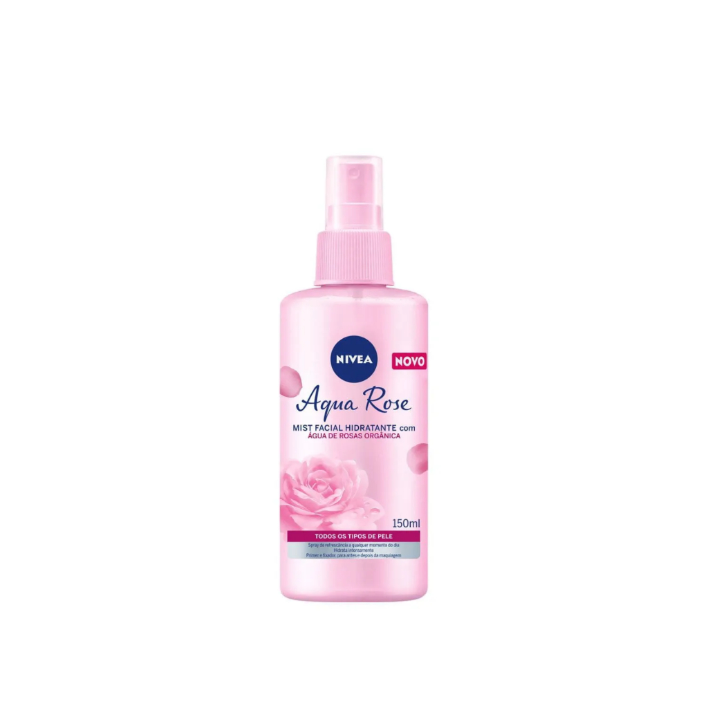 NIVEA Aqua Rose Hidratante facial em spray com águas de rosas orgânicas. Nivea Aqua Rose oferece hidratação intensa e refrescante para qualquer hora do seu dia. NIVEA Hidratante Facial Mist Aqua Rose é um produto desenvolvido para cuidar e refrescar a pele do rosto. Sua fórmula em spray proporciona uma absorção imediata, sem deixar a pele oleosa. Pode ser usado como um primer e fixador para antes e depois da maquiagem, podendo ser reaplicado durante o dia. Dermatologicamente testado. Livre de parabenos, silicone, sulfato, óleo mineral e álcool etílico. NIVEA Hidratante Facial Mist Aqua Rose O NIVEA Mist facial é um spray de absorção imediata que promove hidratação e refrescância em qualquer momento do dia. Também é indicado para ser usado como primer ou fixador.