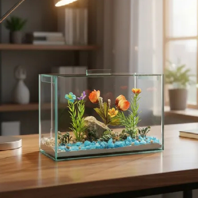 Aquário 4,5l Decorado Retangular 25x12x15cm Peixe Água Vidro