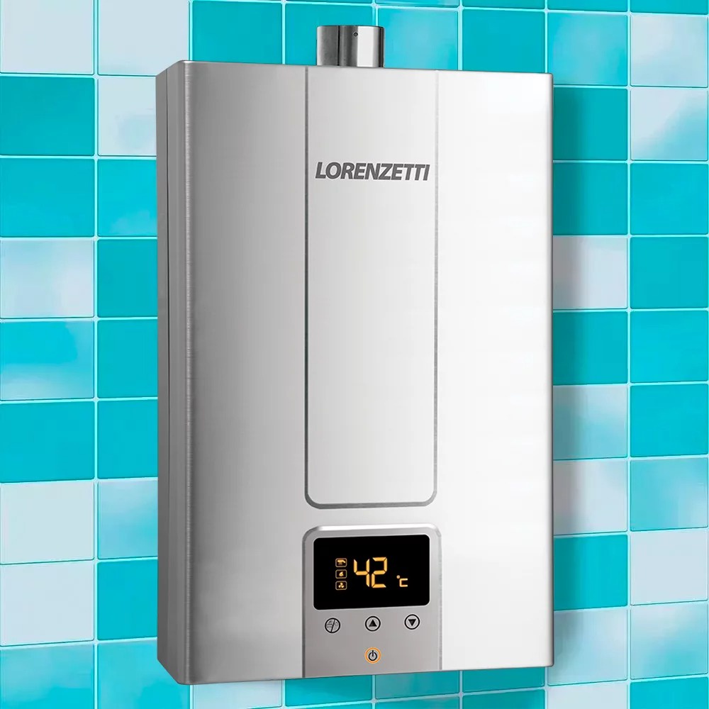 O Aquecedor A Gás 2000 DE-i GN Lorenzetti é um equipamento de alta qualidade projetado para proporcionar conforto e eficiência no aquecimento de água em residências e estabelecimentos comerciais. Com um design moderno e compacto, o aquecedor é alimentado por gás natural (GN). Com uma capacidade de 20L, esse aquecedor é capaz de aquecer grandes volumes de água com rapidez e eficiência, proporcionando água quente em diferentes pontos de uso simultaneamente, como chuveiros, torneiras e banheiras. Ele possui um sistema de ignição automática, tornando o processo de inicialização simples e seguro. Seu controle de temperatura é preciso e ajustável, permitindo que você escolha a temperatura ideal para o seu conforto. Além disso, o equipamento possui proteção contra superaquecimento e fluxo de água, proporcionando uma operação segura e confiável. Outro destaque desse aquecedor é a sua tecnologia de modulação, que ajusta automaticamente a potência de aquecimento de acordo com a demanda de água quente. Vantagens: - Display Touch: Com um simples toque no display você controla todas as funções do seu aquecedor. - Sistema de Exaustão Inteligente: Maior eficiência na exaustão dos gases, principalmente quando instalado em edifícios mais altos onde há maior incidência de ventos. - Controle Eletrônico Digital: Através de sensores de temperatura e fluxo de água, a unidade de comando eletrônico gerencia e monitora as informações garantindo sempre a temperatura selecionada. - Modulação Automática da Chama: A temperatura da água se mantém estável mesmo havendo abertura de mais um ponto de consumo durante o funcionamento do seu aquecedor. - Acendimento Automático: O aquecedor se liga ao abrir o registro de água. - Programação para enchimento de banheira - Acabamento em material Inox Sistemas de Segurança: - Sem Chama Piloto: Seguro e econômico, a chama fica acesa somente no momento de sua utilização. - Sensor de Chama: Corta o gás em caso de ausência de chama - evita vazamentos. - Termostato de Segurança: Em caso de superaquecimento, o aquecedor é desligado automaticamente. Explicação da nomenclatura: LZ 2000 DE-i GN LZ = Modelo 2000 = Litragem do aquecedor que é 20L DE = Digital Eletrônico i = Acabamento em que ele é produzido, Inox GN = Ele funciona a partir de Gás Natural Características técnicas: - Painel Digital - Exaustão Forçada - Chaminé: 80mm - Cor: Inox. - Tipo de gás: Gás natural (GN). - Ideal para o uso com até: Duas duchas + Um misturador *Dimensionamento de uso ideal considerando: ducha com vazão máxima de 8 l/min e misturador com vazão máxima de 4 l/min. - Vazão de água: 20 L por minuto - Diâmetro da Chaminé: 80mm. - Classificação PBE INMETRO: A. - Voltagem: BIVOLT - Compatível com aquecimento solar e boiler. Dimensões: Altura: 62cm Largura: 34cm Comprimento: 20cm Garantia: - 3 anos pelo fabricante. (Em caso de defeitos procurar a assistência técnica apresentando a Nota Fiscal).