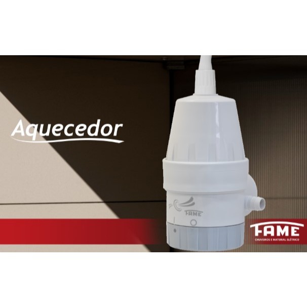 CONFORTO, SEGURANÇA E ÁGUA QUENTE! AQUEÇA SUA PIA COM O AQUECEDOR PARA PIA DA FAME E TENHA ÁGUA QUENTE SEMPRE QUE PRECISAR! O Aquecedor Elétrico FAME é ideal para pias, lavatórios de cozinhas e banheiros. Características: - Instalação externa, rápida e fácil - Tampa seletora de temperatura: Liga / Desliga - Compatível com dispositivo DR. Sua segurança depende de um aterramento adequado e você fica ainda mais seguro complementando sua instalação com o Dispositivo DR instalado no circuito elétrico, ambos previstos na NBR 5410. - Compatível com sistema de aquecimento solar. Especificações: - Voltagem: 110v e 220v (Selecione a voltagem desejada) - Resistência Código: 023 - Potência Nominal (Watts): 4.800W - Seção Mínima do condutor (mm²): 10,0 - Disjuntor (Ampères): 40A - Distância máxima (metros): 30m (*) - Pressão Hidráulica Mínima de Funcionamento: 20 kPa (2m.c.a. - metros de coluna de água) - Pressão Hidráulica Máxima de Funcionamento: 200 kPa (20 m.c.a. - metros de coluna de água) Altura entre a Caixa D'água e o Local onde será instalado o Aquecedor: - Mínima - 2 metros (m.c.a.) = 20kPa - Máxima - 20 metros (m.c.a.) = 200 kPa (Equivalente à altura de um prédio de 7 andares) *A ligação hidráulica NÃO deve ser feita direta com a rede pública sob o risco de danificar o aparelho. (*) Para distâncias maiores consulte um profissional habilitado. Quando ocorrer variação na tensão (voltagem) também ocorrerá variação na temperatura da água. O circuito elétrico deverá ter também o condutor de aterramento com impedância máxima de 2 (ohms) ao qual será conectado o condutor verde-amarelo do Aquecedor Elétrico, para garantir a proteção do usuário. Conteúdo da embalagem: - 1 Aquecedor Solar Fame - Manual de Instruções - Garantia: 12 meses pelo fabricante