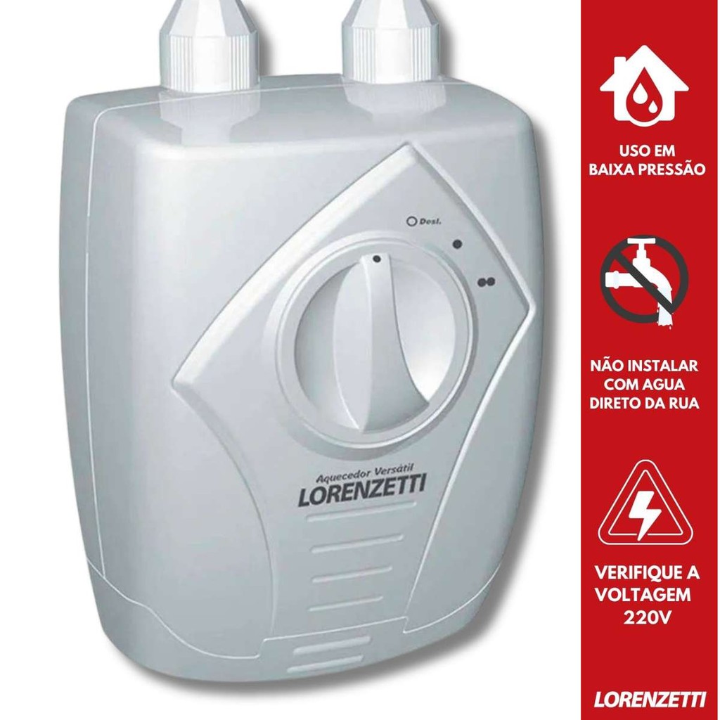 Aquecedor Versátil 3 Temperaturas 5500w 127v Lorenzetti O Aquecedor Versátil é a melhor solução de aquecimento de água para a pia da cozinha ou lavatório. Funciona em qualquer posição. 3 Temperaturas Aquecimento e economia na medida certa. Água Quente Instantaneamente Sem desperdício de água e energia. Versátil Para pias, bidês e lavatórios. Permite a utilização direta com torneiras, misturadores e monocomandos. Troca Rápida da Resistência Tipo refil, de fácil acesso. *Flexível não acompanha o produto