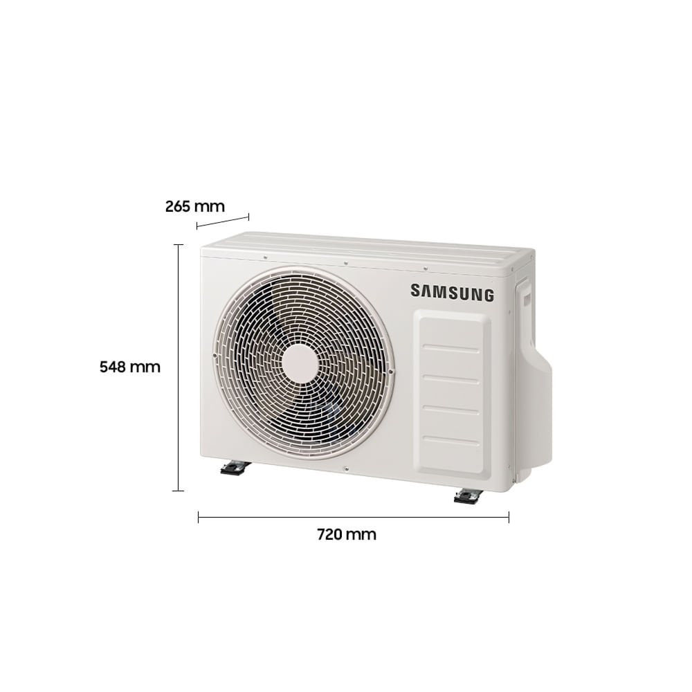 Modo WindFree, controla até o vento Ao toque de um botão o modo WindFree dispersa o ar climatizado através de 23.000 microfuros que eliminam o vento gelado direto, deixando o ambiente ainda mais confortável para você e sua família. Inteligência artificial O ar-condicionado Samsung WindFree AI possui inteligência artificial que aprende as preferências do usuário e compara com a temperatura interna e externa, proporcionando um ambiente ainda mais confortável e garantindo o máximo de economia na conta de energia. Climatização de Boas-Vindas O modo Welcome Cooling, dentro do aplicativo SmartThings, detecta sua localização através do smartphone e liga o ar-condicionado quando você estiver a uma distância predefinida da sua casa, usando seu modo e temperatura preferidos. Conexão Wi-Fi via SmartThings Utilizando o app SmartThings, é possível ligar e desligar o ar-condicionado Samsung WindFree AI, controlar a temperatura e muito mais. Tudo isso é possível também por simples comandos de voz através da Bixby, Alexa ou Google Assistente. Função SmartThings Energy Tenha o controle total dos gastos e consumo de energia em tempo real do seu ar-condicionado, já convertido para R$, com a função SmartThings Energy. Ele também permite criar limites de consumo e ser notificado sempre que atingi-los, sem surpresas no final do mês. Até 77% de economia de energia O modo WindFree mantém o ambiente climatizado, reduzindo o consumo desnecessário de energia ao manter a operação regular após o ambiente atingir a temperatura desejada. Como prova disso, é possível acompanhar em tempo real o consumo de energia do seu ar-condicionado, tanto em kWh quanto em reais. Classe B no Inmetro e menor consumo de energia Compressor digital inverter ultra consome menos e supera com facilidade a nota máxima de eficiência energética, segundo a nova regulamentação do Inmetro. Display invisível Design sofisticado e elegante. O display de temperatura branco garante uma aparência mais homogênea ao seu ar-condicionado. Modo Resfriamento Rápido Com um design que tem maiores aberturas aliado ao poderoso compressor Digital Inverter, o modo de Resfriamento Rápido consegue alcançar até 15m de distância em linha reta, em menos tempo, resfriando o ambiente até 43% mais rápido. Modo Good Sleep Tenha uma boa noite de sono, todas as noites. O modo Good Sleep monitora a temperatura e a umidade do ambiente para mantê-lo confortável durante a noite toda e garante clima ideal para dormir com tranquilidade e mais qualidade. Auto Clean Quando o ar-condicionado é desligado, a função de limpeza automática opera sozinha o ventilador para remover pó e umidade no trocador de calor. Assim, ele permanece limpo e seco, evitando o crescimento de bactérias e mofo. Freeze Wash Esterilize seu ar-condicionado congelando 99% das bactérias do interior, diretamente pelo controle remoto ou SmartThings. Serpentina de cobre A serpentina de cobre, presente na linha de ar-condicionado Samsung, oferece maior resistência e durabilidade. Ecologicamente correto Ajuda a proteger o planeta reduzindo o impacto das alterações climáticas. O ar-condicionado Samsung WindFree AI utiliza o gás refrigerante R32 de última geração, que tem um baixo impacto no aquecimento global e ajuda a reduzir o efeito estufa em comparação com os refrigerantes, além de utilizar uma quantidade menor de gás comparado com o R22 ou R410A. Portanto, é muito mais ecológico. Design simples Design modular simples e peso leve, para fácil instalação. Com apenas 2 parafusos e partes de encaixe, instale o ar-condicionado em um tempo 45% menor.