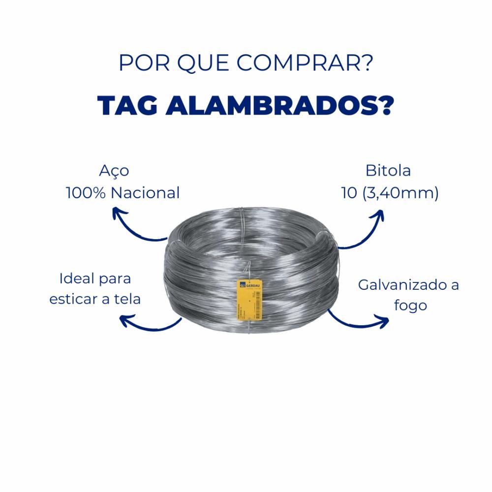 Bitola: BWG 10 (3,40mm) Marca: Gerdau Peso do rolo: 1,0kg Comprimeto aproximado por quilo (m/kg): 14m Camada de galvanização: camada leve de zinco (50g/m²) Tipo de galvanização: Galvanização a Fogo Espessura do fio (bitola): BWG 10 (3,40mm) Fornecido em rolo de 1Kg/cada O arame BWG 10 é utilizado para ajudar a esticar as telas, dando uma base de apoio para o material instalado entre os vãos dos postes, fazendo com que a cerca fique melhor esticada e firme. *POLÍTICA DE ENTREGA* As entregas são realizadas de segunda-feira a sexta-feira, das 8h às 18h. O prazo de entrega é contado a partir da confirmação de coleta da transportadora em dias úteis, ou seja, não inclui sábados, domingos e feriados. Excepcionalmente entregas podem ocorrer aos sábados, domingos e feriados. Por favor, confira as dimensões do produto e certifique-se de que estão adequadas aos elevadores, portas e corredores do local da entrega, pois não fazemos a desmontagem do produto ou qualquer içamento por fora da casa/prédio. *IMPORTANTE:* As entregas são realizadas apenas em ZONA URBANA (Cidade), zonas rurais, ilhas, retiros, aldeias e localidades de difícil acesso não são cobertas pelo frete convencional, favor validar com o vendedor se é possível a entrega e se há taxa extra a ser cobrado. *IMPORTANTE:* após a finalização do pedido não é possível alterar a forma de entrega, solicitar adiantamento ou prioridade. Todos os prazos de entrega levam em consideração o estoque, a região, o processo de emissão da nota fiscal e o tempo de preparo do produto. A cada atualização no status do pedido nosso sistema envia, automaticamente, e-mails de alerta. Por isso, é importante manter seu e-mail atualizado no cadastro. Após a conclusão do pedido, não é possível alterar o endereço de entrega. Caso tenha fornecido o endereço errado, entre em contato com o setor de atendimento ao cliente e solicite o cancelamento da compra. *IMPORTANTE:* por motivos de segurança, em hipótese alguma nossos operadores alteram o endereço de entrega ou os dados cadastrais dos clientes. Caso tenha fornecido o endereço incompleto, entre em contato com o setor de atendimento ao cliente e informe os dados que faltaram. *IMPORTANTE:* será possível, somente, acrescentar informações complementares como bloco, andar, ponto de referência. Não é permitido alterar o nome da rua ou o número do prédio/casa, por exemplo. A entrega só pode ser realizada a uma pessoa maior de 18 anos que apresente documento de identificação. É vedado à transportadora: - entrar no domicílio; - entregar por meios alternativos (exemplo: içar produto por janela); - realizar instalação ou manutenção de produtos; - abrir a embalagem do produto; - coletar produtos de devolução; - realizar entrega em endereço diferente ao que consta no DANFE; - realizar entrega a menores de idade ou sem documento de identificação. *QUALQUER DÚVIDA ENTRAR EM CONTATO COM NOSSA CENTRAL DE ATENDIMENTO AO CLIENTE, SUA SOLICITAÇÃO SERÁ RESPONDIDA BREVEMENTE