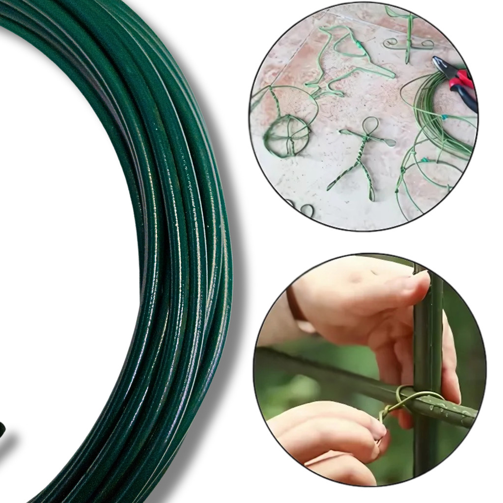 ARAME GALVANIZADO 14 BWG (2,10mm) PVC VERDE (2,80mm) 200 gramas (aproximadamente 6,00 metros) Os arames revestidos com PVC têm maior durabilidade e são resistentes aos raios UV. Destinados para trabalhos tais como amarração de placas de gesso, Drywall, manutenção residencial, industrial, artesanato, jardinagem, amarrações e outros. Disponível na cor verde. Espessura do arame: Sem PVC: 2,10mm Com PVC: 2,80mm