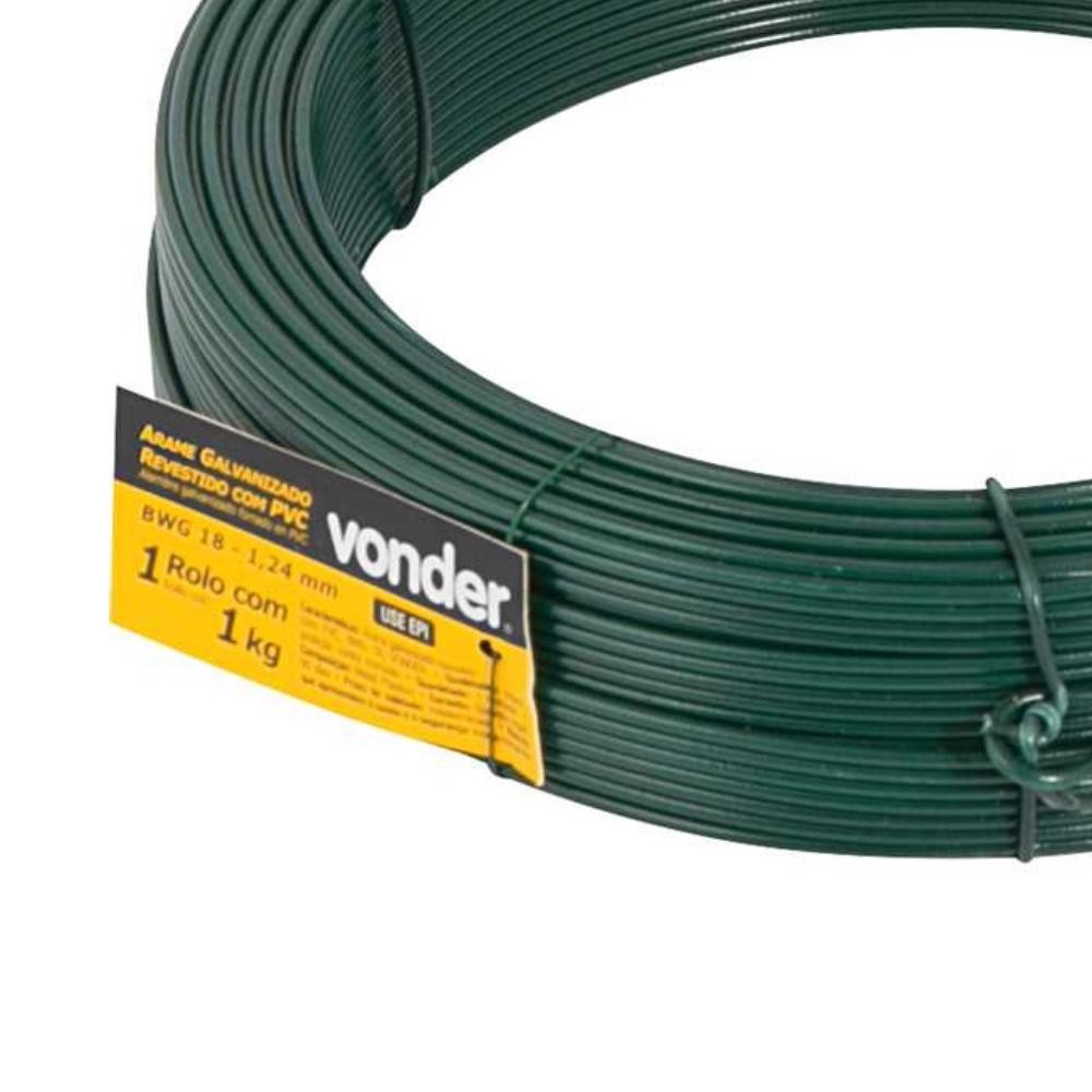 Arame Revestido Pvc Verde Rolo 1kg BWG18 VONDER É a solução ideal para quem busca um produto de alta durabilidade e resistência, perfeito para diversas aplicações. Este arame possui um revestimento de PVC que garante uma maior proteção contra a corrosão, proporcionando uma vida útil muito mais longa, mesmo em ambientes externos, expostos às intempéries. Com um diâmetro de 1,24 mm (BWG 18) e revestido com PVC verde de alta qualidade, este arame é amplamente utilizado para amarrações em geral, especialmente em telas e alambrados, além de ser uma excelente opção para artesanatos e diversos outros usos na construção civil e agropecuária. Seu revestimento verde não só aumenta a estética do trabalho, mas também melhora a resistência contra o desgaste e a oxidação, fazendo com que o arame mantenha-se em ótimas condições por mais tempo. Cada rolo de 1 kg oferece cerca de 81 metros de comprimento de arame, permitindo uma grande área de aplicação com um único rolo. A espessura do arame com revestimento é de 1,90 mm, garantindo a robustez necessária para suportar diferentes tipos de amarrações e fixações. Este modelo de arame é produzido com aço de baixo teor de carbono, que é especialmente moldado para ser flexível, mas ao mesmo tempo resistente o suficiente para uso industrial e comercial. Este arame é muito procurado em ambientes como fazendas, galpões, cercados, e outras instalações que exigem arame de alta qualidade para garantir a segurança e a durabilidade. Não indicado para uso em gesso, este arame se destaca por sua resistência à oxidação, tornando-se a melhor escolha para quem precisa de uma solução que resista ao tempo e ao desgaste das condições externas. VANTAGENS E BENEFÍCIOS Revestimento de PVC: O PVC é um material altamente resistente à corrosão e ao desgaste, o que garante que o arame tenha uma vida útil mais longa, mesmo quando exposto a condições climáticas adversas. Alta Resistência: O revestimento de PVC não apenas melhora a durabilidade do arame, mas também oferece maior resistência mecânica. Isso significa que o arame mantém sua integridade durante o uso intensivo, mesmo em ambientes de alta umidade ou em contato com elementos corrosivos. Flexibilidade: Produzido com aço de baixo teor de carbono, o arame é maleável e fácil de manusear. Isso facilita a realização de amarrações e ajustes, tornando-o versátil para diversas aplicações. Versatilidade de Uso: Ideal para telas e alambrados, este arame é indicado para agropecuária, construção civil, e para artesanatos, abrangendo uma ampla gama de necessidades de amarração e fixação. DADOS TÉCNICOS Modelo: BWG 18 Acabamento: Revestimento PVC Comprimento aproximado por rolo: 81 metros Cor: Verde Diâmetro do arame: 1,24 mm (BWG 18) Diâmetro do arame com revestimento: 1,90 mm Tipo de aço: Aço de baixo teor de carbono Tipo do arame: Comercial Massa aproximada (peso): 1 kg Garantia: 3 meses Referência: 7495018000 Marca: VONDER * Imagens meramente ilustrativas