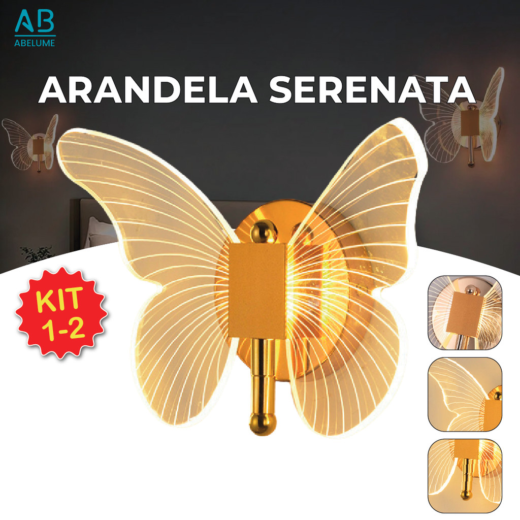 Arandela Borboleta Led Dourada Decorativa de Parede Luz Quente 3000K 110V-220V Bivolt