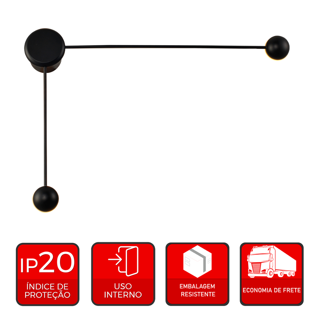 Arandela Led Articulada Dupla Max ou Mini Zênit 5w ou 10w 2700k Branco Quente Bivolt Ip20 Preto Seed