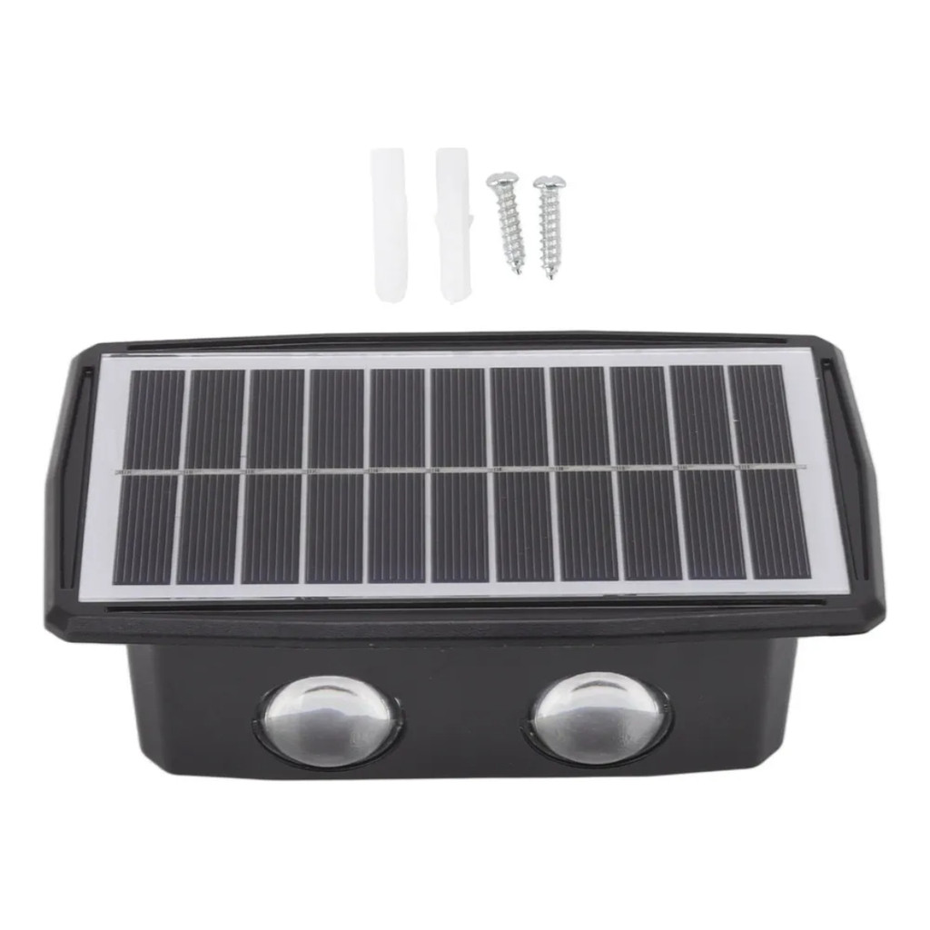 Arandela Solar LED Parede Externa com Sensor Crepuscular com 4 Fachos A arandela solar com 4 LEDs é uma solução moderna e econômica para iluminação externa. Com design compacto, ela utiliza energia solar para funcionar, dispensando fios e ligações elétricas. Equipada com sensor crepuscular, acende automaticamente ao escurecer e apaga ao amanhecer, garantindo praticidade e economia. Características principais: 4 LEDs de alto brilho modelo 5050 SMD -Iluminação automática ao anoitecer (sensor de luz) -Carregamento solar com exposição mínima de 6 horas ao sol direto -Tempo de funcionamento de 8 a 12 horas com carga completa -Proteção IP65 contra chuva e poeira -Material resistente em ABS na cor preta -Bateria recarregável modelo 18650 de 1200mAh Controle inteligente: não precisa de controle remoto Instalação fácil: A instalação é simples e pode ser feita diretamente na parede com parafusos (inclusos). Basta posicionar a arandela onde receba luz solar direta, ativar o botão ON/OFF na parte traseira e ela estará pronta para uso. Importante: -A placa solar deve estar livre de sombras, vidro ou objetos que impeçam a exposição direta ao sol -Não é recomendada a instalação em locais cobertos ou com pouca incidência solar -Para melhor desempenho, antes do primeiro uso, deixe o produto carregando ao sol por pelo menos um dia com o interruptor ligado Ideal para varandas, muros, corredores, jardins, portões, escadas e áreas externas em geral. Itens inclusos: 1 Arandela Solar LED 4 LEDs 1 Manual 1 Kit de Parafusos para Instalação Garantia do vendedor: 90 dias