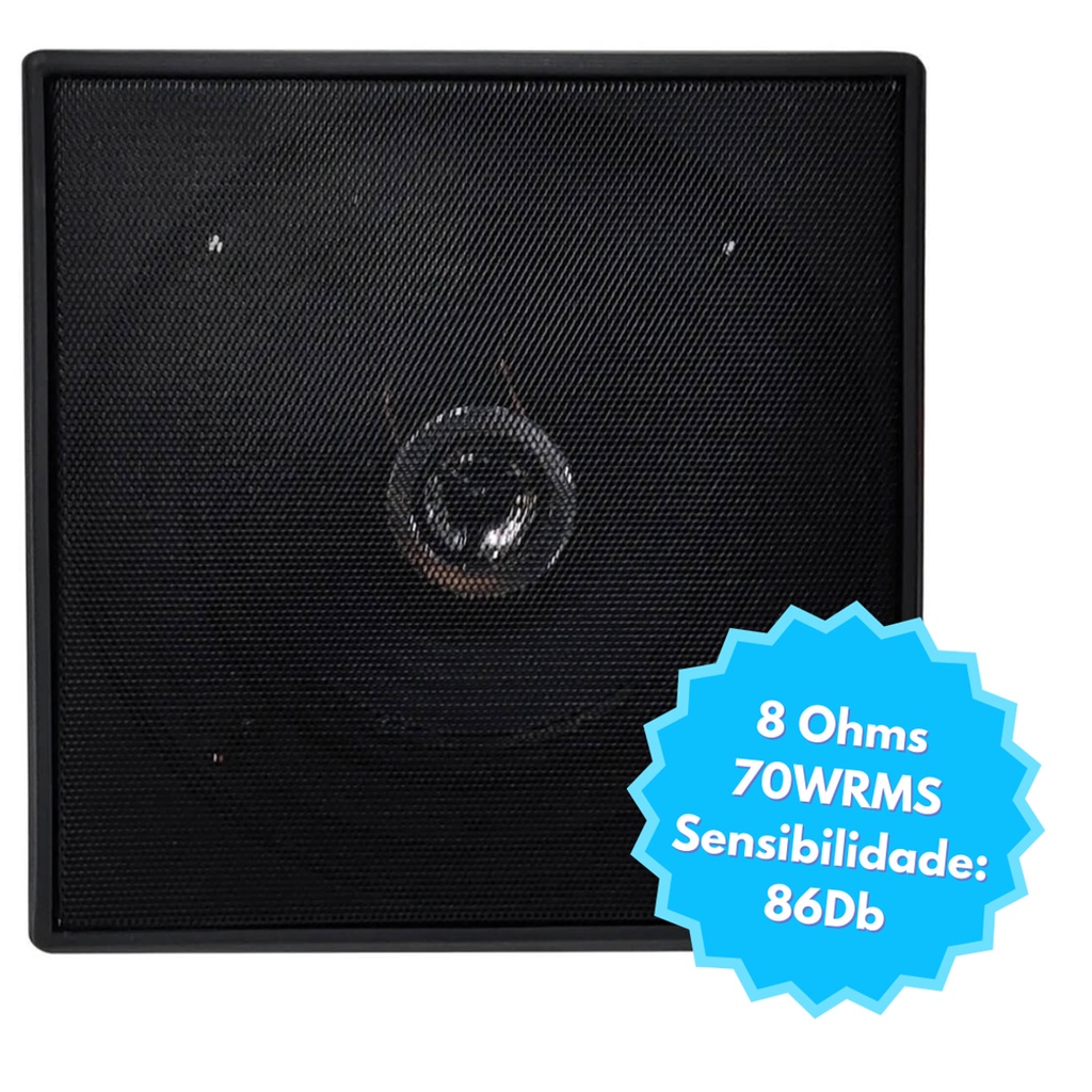 Arandela Quadrada Preta Tweeter 70W Som Ambiente para Teto 86Db - Leson 2LS078AQP