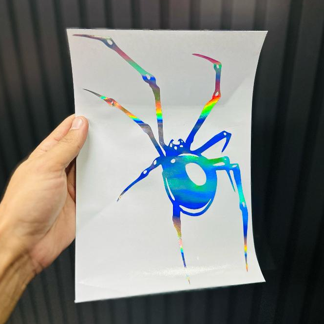 Aranha Adesivo Recortado em Vinil Holográfico Preto Branco carro tanque moto Resistente Água