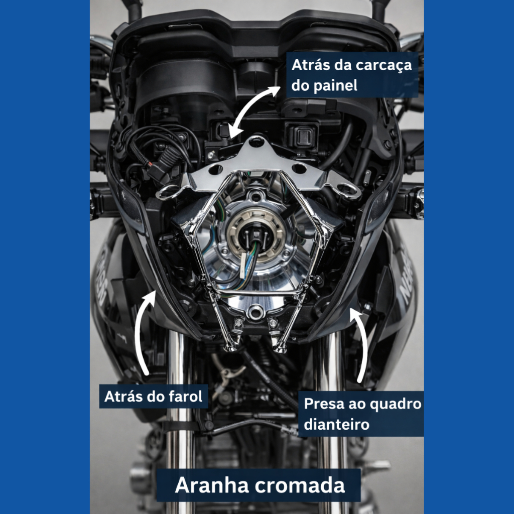 Suporte Estrutural Preto – Alta Resistência Peça de reposição desenvolvida para fixação do conjunto frontal da moto. Ideal para substituição da aranha/suporte do farol, garantindo alinhamento correto do farol e estabilidade do painel. Compatibilidade • Honda CG 150 Titan – 2004 a 2008 • Versões: KS / ES / ESD / Sport Não serve • CG 150 Fan (frente diferente) • Modelos 2009 em diante Especificações • Aplicação: Dianteira (Farol / Painel) • Tipo: Suporte / Aranha do Farol • Cor: Preto • Material: Metal de alta resistência • Acabamento: Pintura preta Conteúdo da Embalagem • 1x Suporte Estrutural (Aranha do Farol) Instalação Substituição direta. Recomenda-se instalação profissional. Produto novo com garantia contra defeito de fabricação. Palavras-chave: aranha farol cg 150, suporte farol titan 150, suporte painel cg 150, aranha titan 2004 a 2008