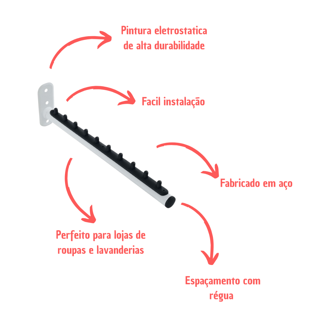 Arara Cabideiro Rt De Parede 40cm Para 10 Cabides com Parafusos e Buchas