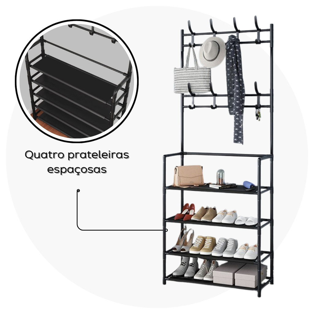 Arara de Roupas com Sapateira 4 Andares Cabideiro Organizador Multifuncional