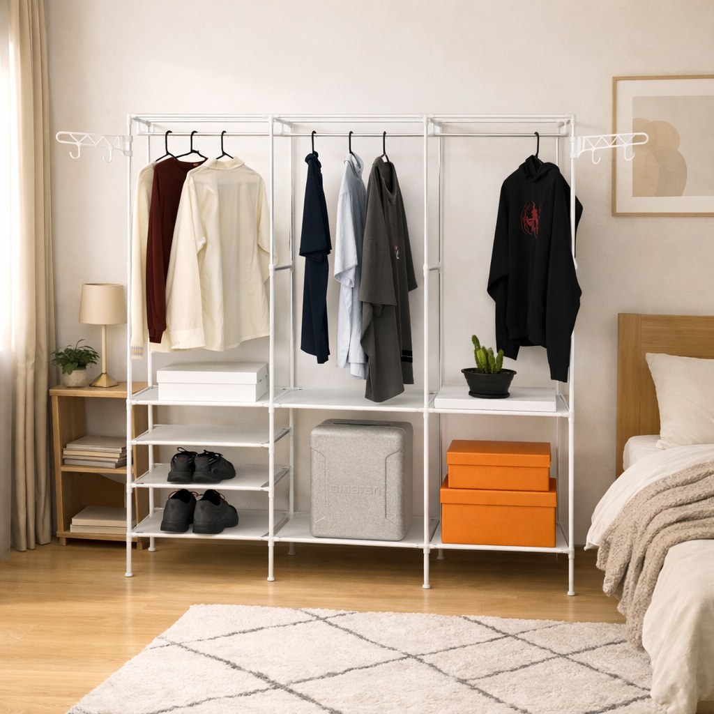 Arara de Roupa Cabideiro de Chão com Sapateira – Organizador Multiuso em Aço Inox Com design aberto e funcional, esta arara organizadora é ideal para maximizar o espaço e manter suas roupas sempre visíveis e acessíveis. A barra larga para pendurar comporta tranquilamente casacos, vestidos longos, peças formais e roupas pesadas, ajudando a evitar amassados. As prateleiras inferiores são perfeitas para organizar sapatos, caixas organizadoras, bolsas ou acessórios, deixando tudo em um só lugar. Fabricada em metal de alta qualidade, possui estrutura reforçada, textura rígida e excelente capacidade de carga. Conta com pintura antiferrugem, garantindo maior durabilidade e resistência no uso diário. Por ser mais robusta que estruturas de liga de alumínio, não entorta e não colapsa mesmo com grande volume de roupas. 📐 Modelo e Medidas Grande: 160 × 36 × 173 cm 🎨 Cores Disponíveis -Preto -Branco 📦 Conteúdo da Embalagem 1 Arara / Rack Organizador Tamanho da embalagem: 53 × 33 × 9 cm 🚚 Envio Produto à pronta entrega Envio em 1 a 2 dias úteis após confirmação do pagamento Não realizamos envios em feriados e finais de semana 📍 Entrega Entrega mais rápida para regiões centrais e próximas a São Paulo Para interior ou regiões remotas, o prazo pode ser um pouco maior O prazo e o transporte são gerenciados pela Shopee Transportador O pedido pode ser rastreado diretamente pelo aplicativo Shopee Estamos sempre à disposição para ajudar durante todo o processo de compra 😊 💬 Atendimento ao Cliente Ficou com alguma dúvida? Entre em contato pelo chat da loja! Respondemos em até 1hora, sempre o mais rápido possível. ✨ Obrigada pela preferência e boas compras!