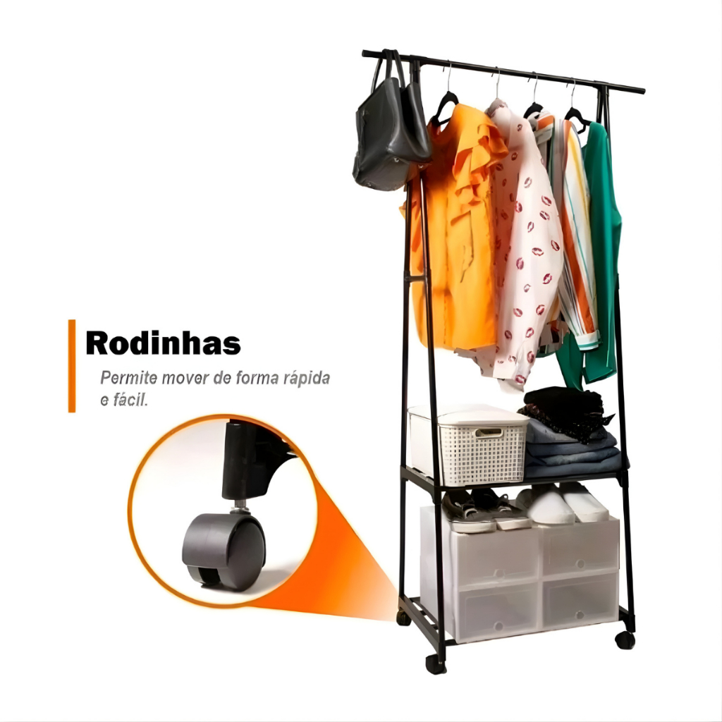 A Arara Organizadora com Prateleiras e Rodinhas é a solução ideal para quem busca organização, praticidade e melhor aproveitamento de espaço. Com estrutura resistente e design compacto, funciona perfeitamente como closet aberto, estante de roupas ou organizador multiuso para quarto, lavanderia ou loja. Ideal para manter roupas, casacos, toalhas, caixas e calçados sempre visíveis, acessíveis e organizados. PRINCIPAIS CARACTERÍSTICAS: - Cabideiro resistente para roupas - Ideal para pendurar camisas, vestidos, casacos e toalhas com praticidade. - 2 prateleiras multiuso - Perfeitas para organizar sapatos, caixas organizadoras, bolsas e itens do dia a dia. - Estrutura leve e funcional - Fabricada em ferro com pintura protetora, plástico e TNT. - Rodinhas com trava - Facilita o transporte e permite travamento para maior estabilidade. - Alta otimização de espaço - Ideal para apartamentos e ambientes compactos. - Montagem simples e rápida - Não precisa de ferramentas. Fácil de montar seguindo o manual. - Suporta até 15kg distribuídos - Estrutura estável para uso diário. ESPECIFICAÇÕES TÉCNICAS: - Produto: Estante / Arara Organizadora - Altura: 160 cm - Largura: 55 cm - Comprimento: 42 cm - Peso aproximado: 1,2 kg - Material: Ferro, plástico e TNT - Quantidade de prateleiras: 2 - Cabideiro: 1 IDEAL PARA: - Organização de quartos e closets - Lavanderias - Lojas e ateliês - Ambientes pequenos que precisam de melhor aproveitamento de espaço Se você procura arara para roupas com prateleiras, closet aberto funcional e organizador com rodinhas, essa é a escolha ideal para manter seu ambiente moderno, organizado e prático no dia a dia.