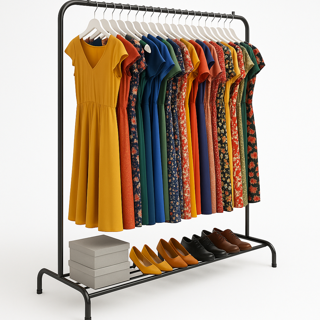 Arara para Roupas Longas 1,90m com Sapateira – 100% Aço, suporta 90 Cabides, Reforçada Organização Profissional | Biorty