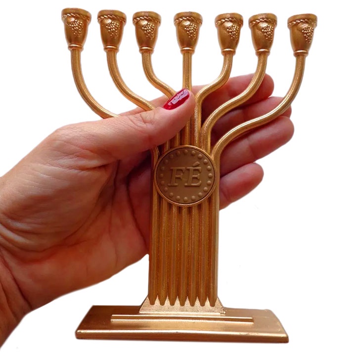 Arca da Aliança com 13cm + Menorah Dourado Fé Arca da Aliança e Candelabro Menorá para decoração de mesa e altar Arca da Aliança Material: Plástico ABS Dourado Medidas Externas aproximadas: 13cm x 9cm X 7cm Medidas Internas aproximadas: 7,4cm de comprimento x 4,2cm de largura x 3,2cm de profundidade Menorá Material: Plástico ABS Dourado Medidas: 16,5cm de altura x 13cm de largura x 1,5cm de profundidade (corpo) 3,5cm profundidade (base) Peso Total: 100 gramas Menorah compre aqui, 100% seguro para presentear alguém especial ou decorar seu altar Dúvidas Frequentes FAQ: 1º Vocês emitem Nota Fiscal? R: Sim, 100% das nossas vendas são com Nota Fiscal. 2° Emitem Nota Fiscal para CNPJ? R: Sim, basta realizar o cadastro utilizando o CNPJ que deseja na Nota Fiscal. 3° Tem o produto a pronta entrega? R: Sim, nosso estoque é sincronizado com o site, se está disponível para compra é porque temos em estoque =) 4° Se eu comprar hoje, vocês enviam hoje mesmo? R: Nosso horário de corte para transportadoras é: 13:00, a compra com confirmação de pagamento sendo feitas antes desse horário enviamos no mesmo dia, após esse horário será enviado no dia seguinte. 5° Chegará antes de sábado? R: Basta inserir seu CEP no campo "calcule o frete" dentro do seu carrinho de compras, que aparecerá uma lista com preços e prazos estimados de entrega.