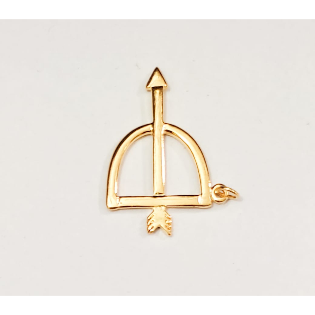 Nome : Arco e flecha (5 peças). Quantidade : 5 unidades Cor : Níquel, dourado Material : Metal Tamanho médio : 2,6 cm x 2,1 cm Tamanho pequeno : 1,5 cm x 1,2 cm Obs. : Nem todos os pingentes acompanham argola, pois podem variar de acordo com o lote e fábrica.
