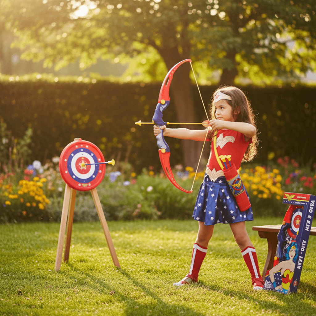 O Kit Arco e Flecha Mulher-Maravilha vai garantir a diversão da criançada com muita aventura e imaginação! ✔️ Flechas com ventosas na ponta, trazendo segurança e tranquilidade para os pequenos ✔️ Design moderno e resistente, perfeito para brincadeiras cheias de ação ✔️ Acompanha alvo com pontuação, tornando a brincadeira ainda mais desafiadora ✔️ Inclui bolsa aljava, para carregar as flechas com praticidade Diversão segura, temática e cheia de heroísmo!