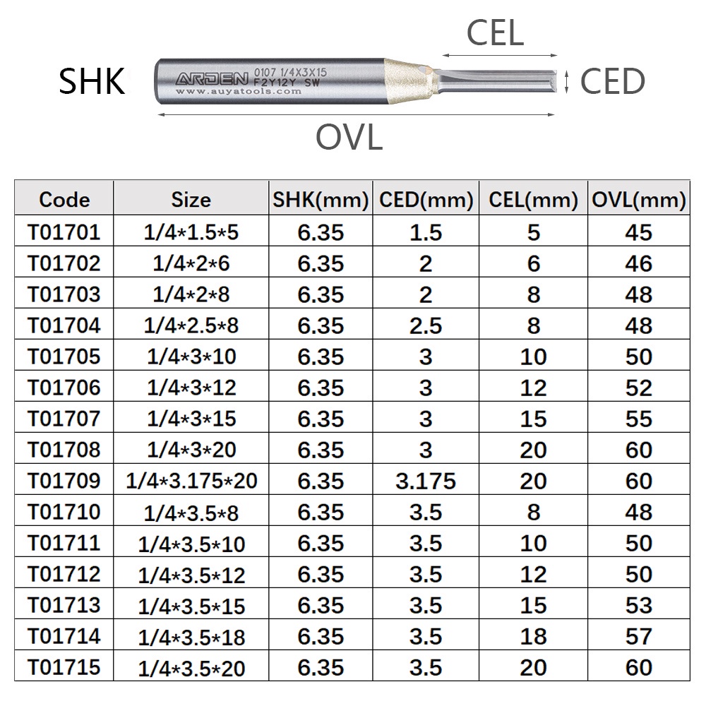 Arden CNC Ferramenta Para Trabalhar Madeira TCT Corte Fresas De Extremidade Reta Aço Tungstênio 1/4 Haste Roteador Bit M