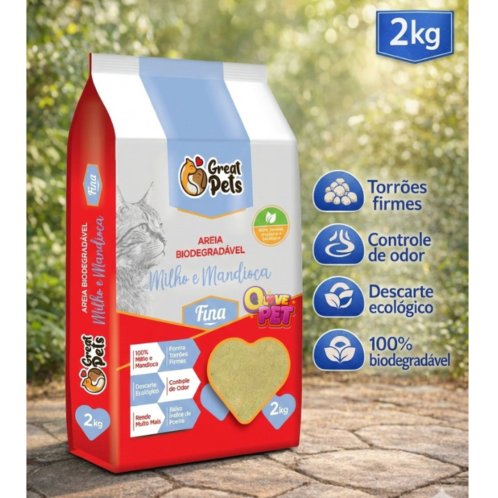 Areia Biodegradável Fina para Gatos - Great Pets
