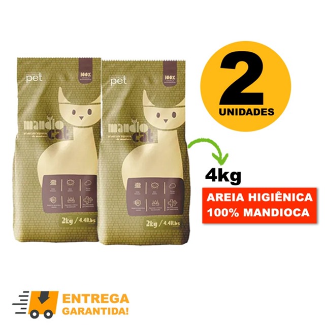 Areia de Gato MandioCat Biodegradável higiênica natural 100% Mandioca 4KG -Envio Rápido