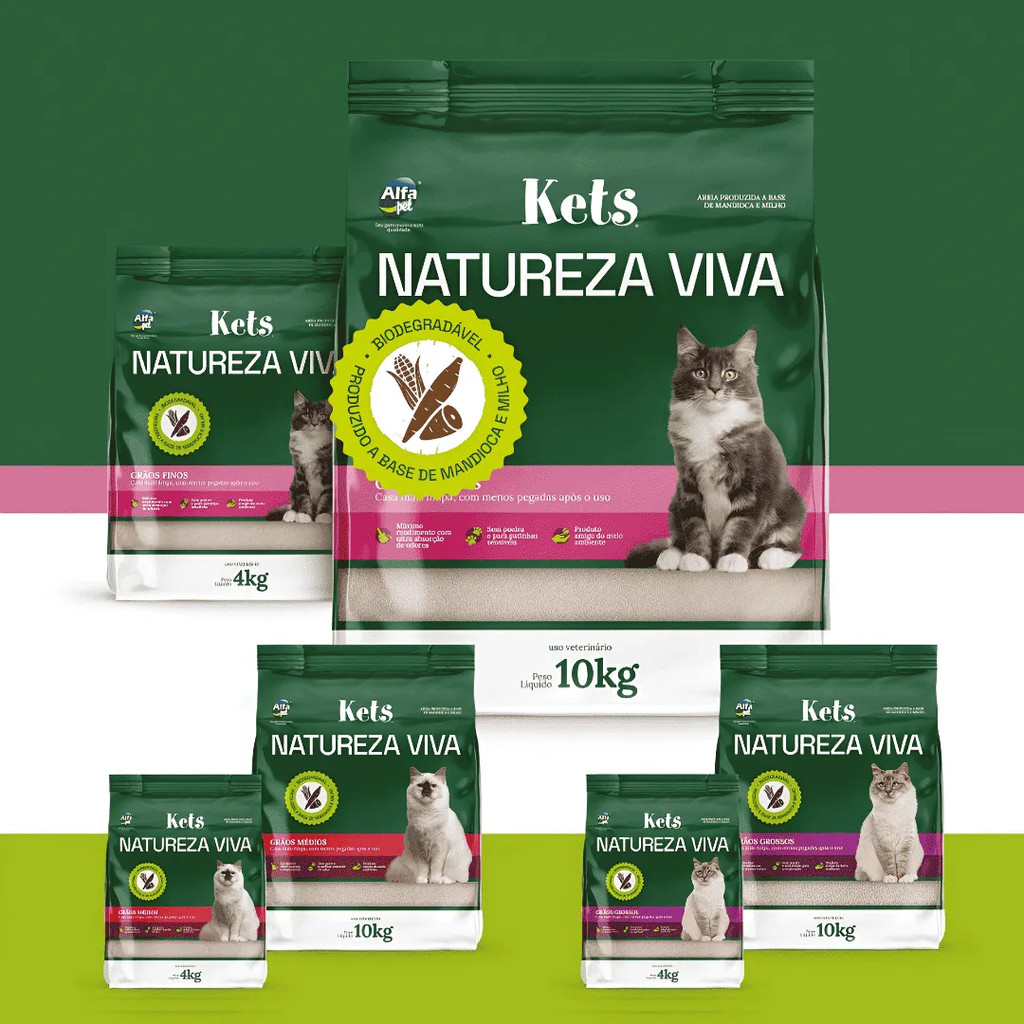Areia Higiênica 10 kg Kets Natureza Viva Grãos Finos Para Gatos