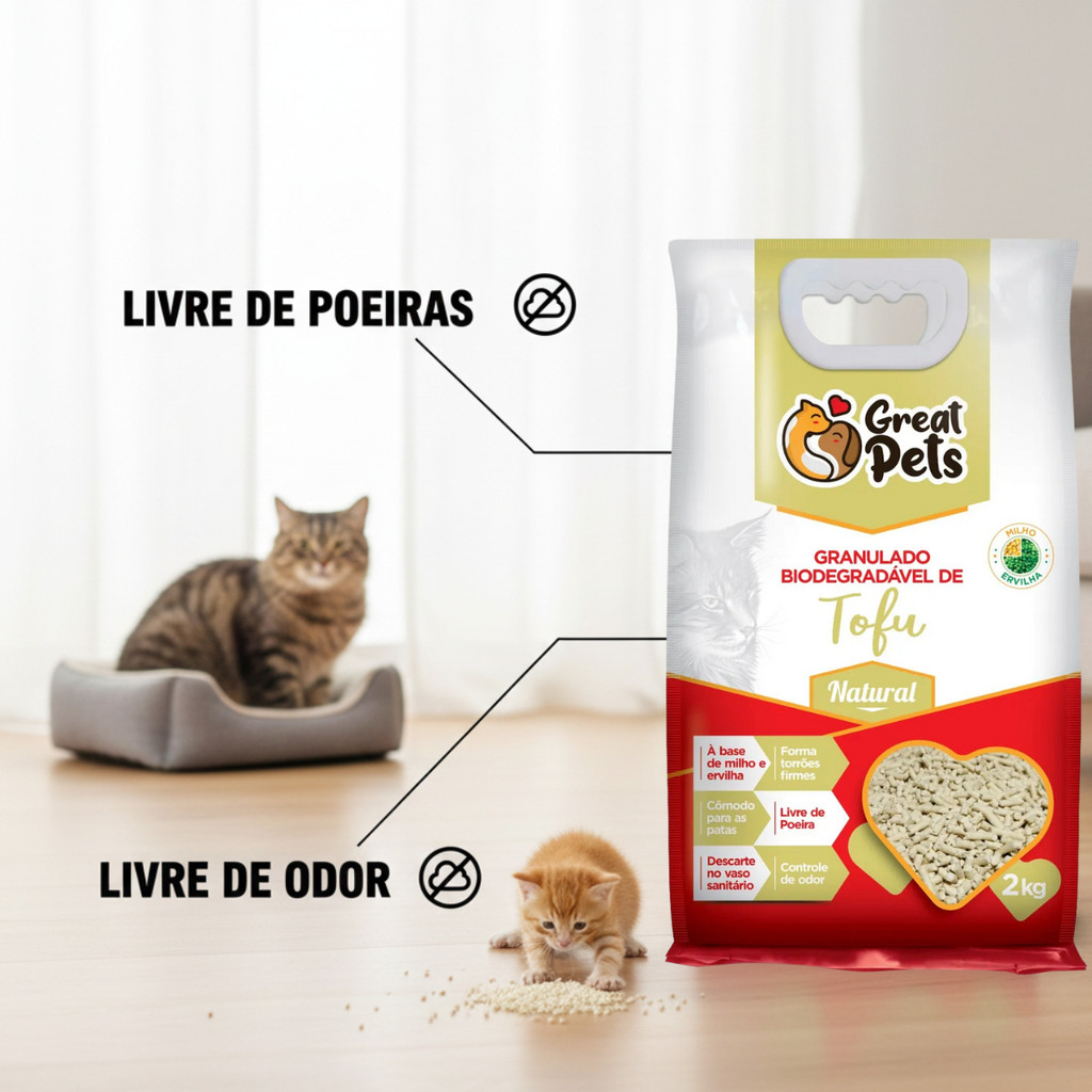 Areia Higiênica 8kg Gatos Great Pets Tofu Natural Granulado Premium