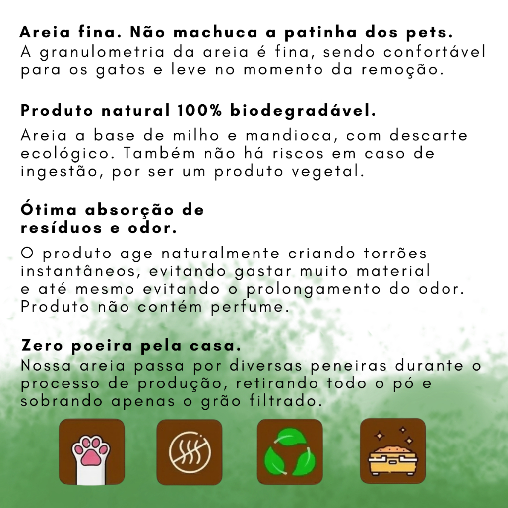 | Areia Higiênica Biodegradável Para Gato Tiger Cats Milho e Mandioca... este produto | R$ 26,50 | 12% | 4.9/5 | — |